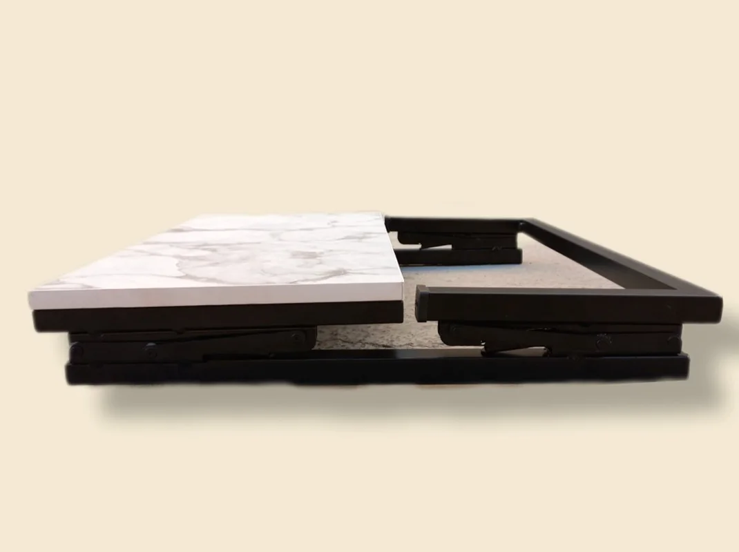 ***فیلم میز جادویی در صفحه اصلی سایت قرار دارد**** میز جادویی صدرا گستر با صفحه ای ۳۰×۶۰ از جنس چوب MDF با روکش طرح سنگ طوری که تشخیص چوبی بودن آن بسیار سخت بوده محصولی منحصر به فرد , سبک با وزنی کمتر از ۶ کیلو و قابل حمل به نحوی که در کمترین زمان از 10 سانت به یک میز استاندارد و مقاوم تا 80 سانت ارتفاع قابل تنظیم میباشد. طراحی این محصول به نوعی می باشد که کاربرد های زیادی از جمله مطالعه , کار با لپتاپ , غذا خوری و یا هر کاری که با یک میز میتونید انجام بدید در ارتفاع دلخواه شما.